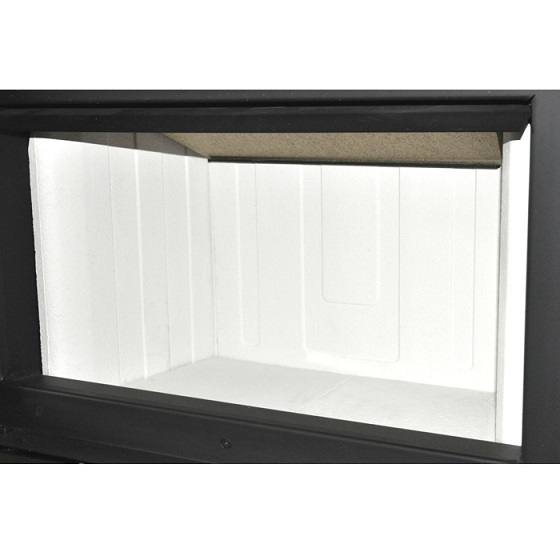 Palenisko w tych wkładach także jest niestandardowe, ponieważ nie znajdziemy tam ani szamotu ani wermikulitu. Firma Bef opatentowała swój własny pomysł na wyłożenie paleniska, jest to tak zwany GAZOBETON, materiał bardzo trwały i w 100% spełniający swoje zadanie. Należy zwrócić uwagę także fakt, że palenisko w tych wkładach składa się przeważnie z jednolitych bloczków gazobetonowych. Przeważnie w innych wkładach palenisko składa się z większej ilości płytek szamotowych bądź wermikulitowych. Zdecydowanie w przypadku Befa efekt wizualny jest bardziej estetyczny. Mało tego gazobeton może być zabarwiony w masie w różnych kolorach, w standardzie jest to kolor czarny a każdy inny dostępny jest za dodatkową opłatą - cena na zapytanie indywidualne.