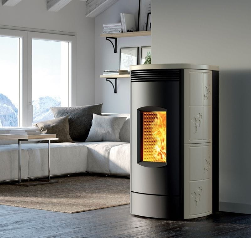 Alpina to zaokrąglona obudowa z korpusem wykonanym z lakierowanej stali. Niezwykłego charakteru dodają fragmenty ceramiczne, zarówno górna pokrywa, jak i boczne części wykonane są z włoskiej majoliki. Uwagę przyciągają także tłoczone na płytkach zdobienia w kształcie liści. Każdy model posiada żeliwne, czarne drzwi.