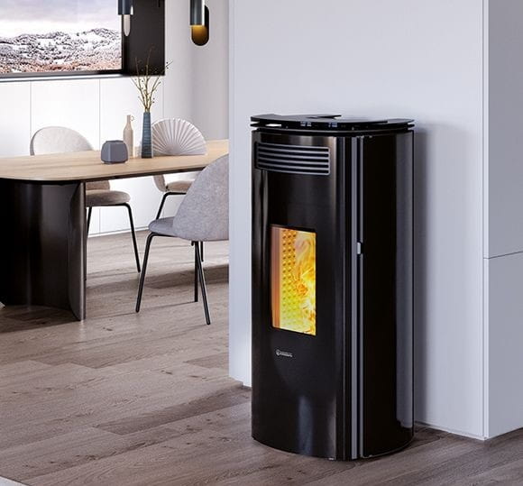 Bolla to zaokrąglona obudowa z korpusem wykonanym z lakierowanej stali. Wyjątkowo modna cylindryczny Kształt obudowy w całości wykonany z giętego szkła w kolorze czarnym. Podwójne drzwi i wysuwana jak szuflada górna pokrywa pieca wieńczą ten wyjątkowo nowatorski projekt obudowy.
