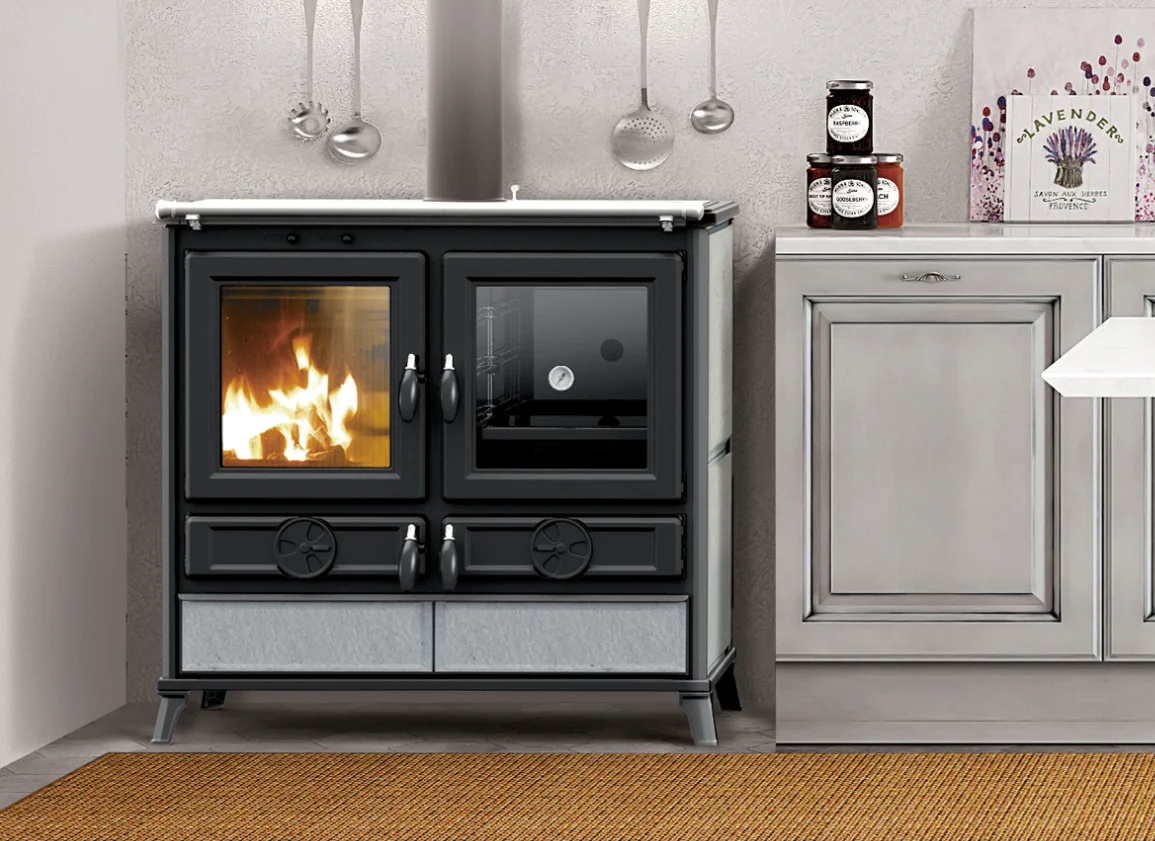 Kuchnia jest wyposażona w piekarnik znajdujący się obok paleniska. Piekarnik posiada osobne drzwiczki z termometrem, co umożliwia komfortowe pieczenie potraw. Dodatkowo na górze kuchni wolnostojącej znajduje się płyta grzewcza z fajerkami. W rezultacie dzięki jednemu piecykowi zyskujemy możliwość ogrzewania, gotowania i pieczenia jednocześnie. Kolejnym atutem kuchni na drewno jest niezależność jaką nam dają. Nawet w przypadku przerw w dostawie mediów w naszym domu jest ciepło i pachnie domowym obiadem, pizzą czy ciastem.