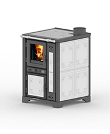 Kuchnia na drewno z płaszczem Thermorossi Bosky 30 Fiori jest przeznaczona do ogrzewania większych przestrzeni, dzięki podłączeniu jej to systemu centralnego ogrzewania.