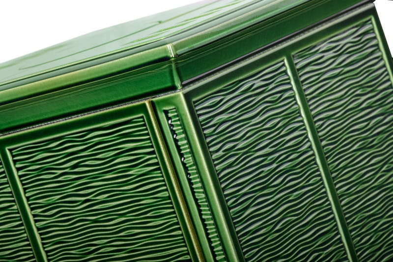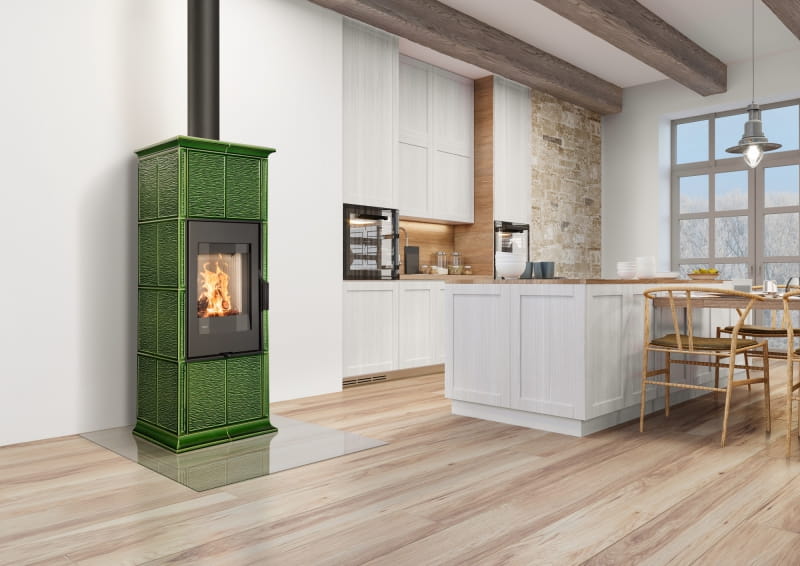 - Innowacyjne palenisko marki ROMOTOP z centralnym ( zewnętrznym ) doprowadzeniem do komory spalania tzw- CDP , drzwiczki z dwu punktowym domykaniem dla maksymalnej szczelności, disainerska klamka z rączką z litego drewna.