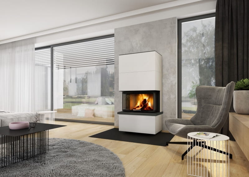 • Korpus kominka perfekcyjnie komponuje się z kaflowa okładziną , wersja o nazwie 3S jest z trzech stron obudowana kaflami które są idealnym materiałem do efektywnego promieniowania ciepła