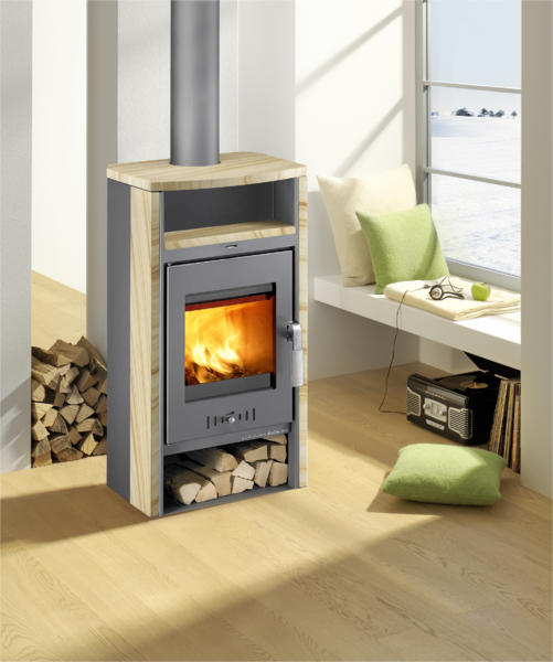Piec nie musi być po prostu czarny. Dowodem na to jest kominek Livorno z serii Home. Dzięki jasnemu designowi nadają się również do mniejszych pomieszczeń, które rozjaśniają je optycznie. Unikalne połączenie korpusu w kolorze antracytu i okładziny z naturalnego piaskowca oświetla ciemne zimowe wieczory.
