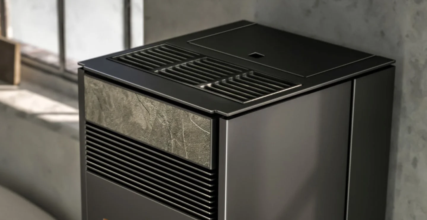 Powietrzny piecyk na pellet Nobis A10 Quadra Plus C1 przeznaczony do ogrzewania kilku pomieszczeń.