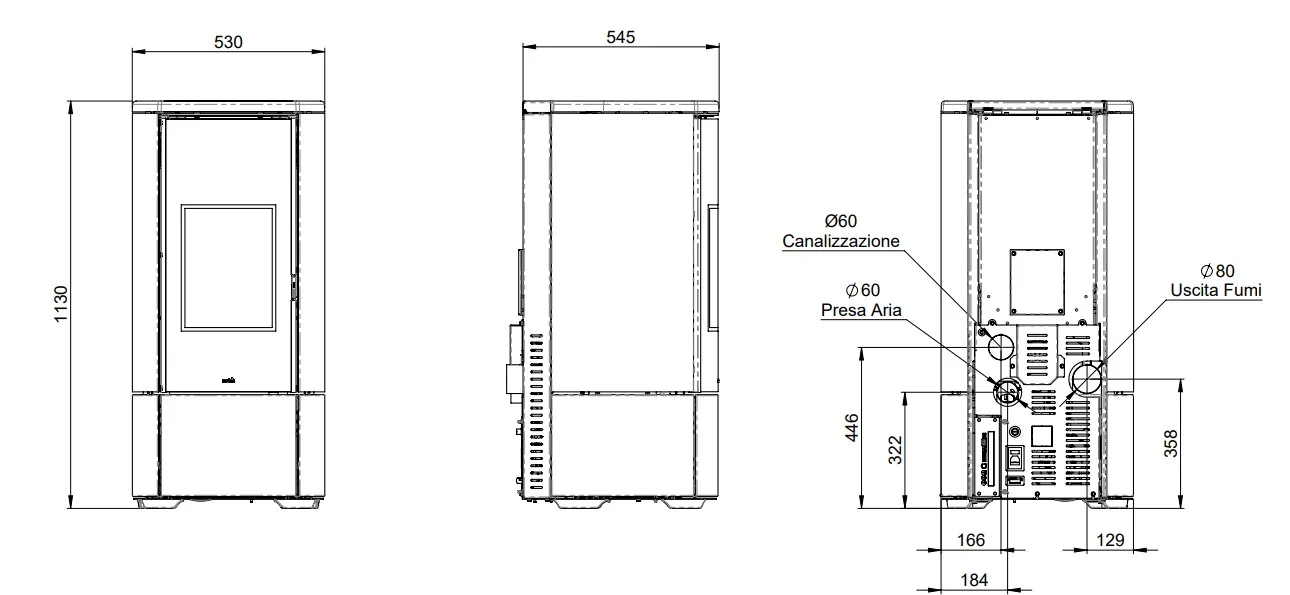 Parametry techniczne – piecyk na pellet Nobis A8 V Round steel