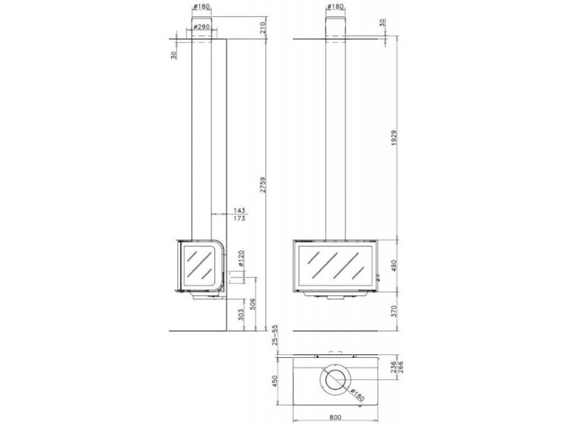- pionowa osłona rury dymowej w ścianie