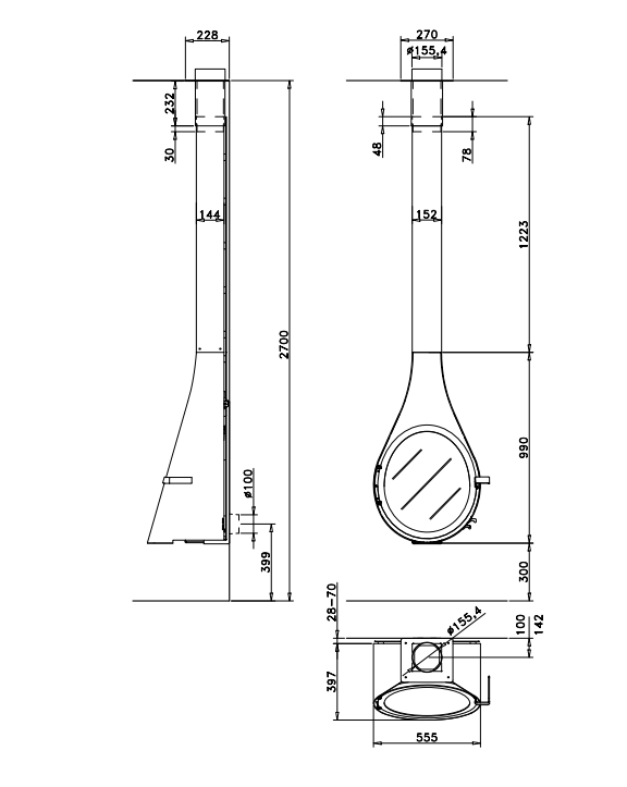 Możliwość podłączenia do komina od tyłu oraz z góry, średnica wylotu spalin fi 180.