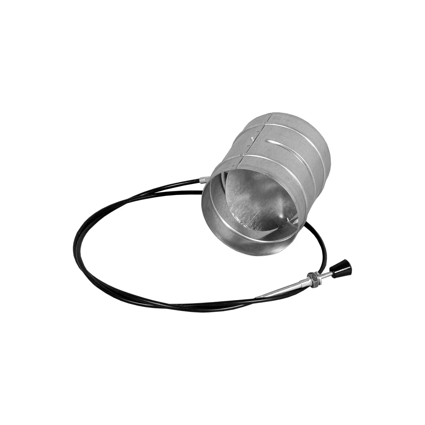 Element przeznaczony do regulacji przepływu powietrza w sieciach dystrybucji gorącego powietrza lub w przewodach doprowadzających powietrze pod wkład kominkowy. Regulacja przepływu za pomocą cięgna o długości 150 cm