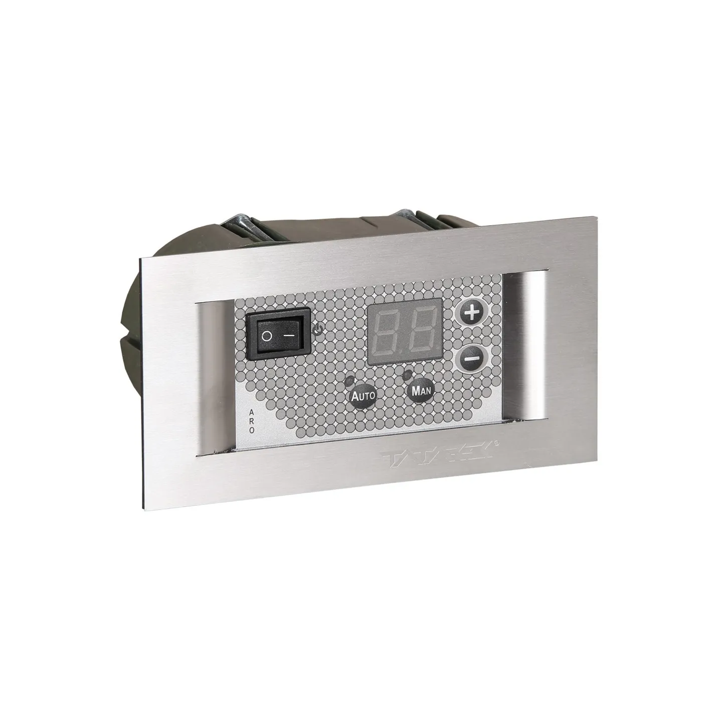 Mikroprocesorowy regulator obrotów RT-03C ARO mierzy temperaturę w komorze turbiny gorącego powietrza, ustala jego prędkość obrotową i steruje przepływem ciepłego powietrza. Regulacja pracy odbywa się w dwóch trybach: ręcznym lub automatycznym. W trybie ręcznym prędkość obrotów ustala się w skali od 0 do 10. W trybie automatycznym prędkość obrotowa silnika turbiny regulowana jest automatycznie w zależności od pomiarów temperatury. Po przekroczeniu temperatury 40oC wentylator załącza się z minimalną prędkością obrotową. Wraz ze wzrostem temperatury liczba obrotów proporcjonalnie wzrasta. W trybie automatycznym, na wyświetlaczu regulatora podawane są bieżące odczyty temperatury.