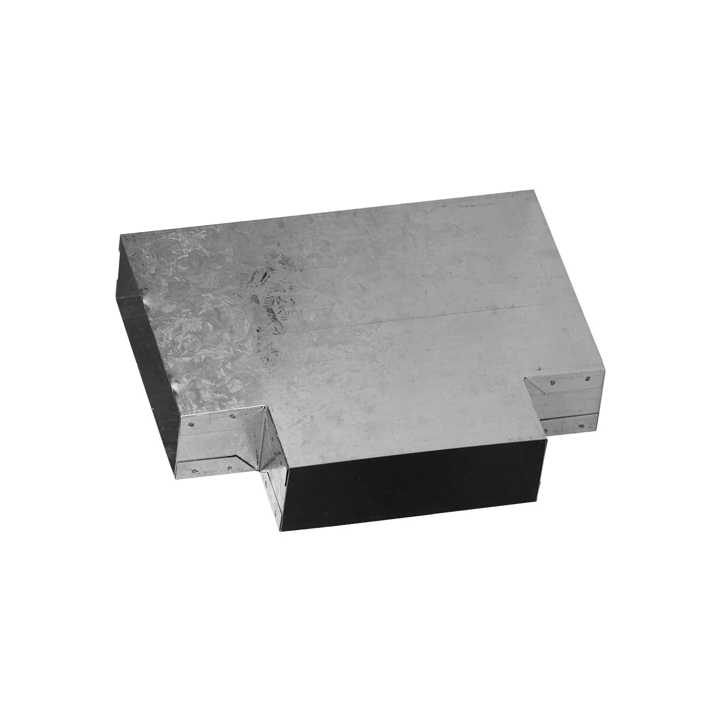 Trójnik 90° z systemu kanałów prostokątnych o przekroju 150x50 mm, umożliwia rozgałęzienie systemu na dwa kanały pod kątem 90 stopni.