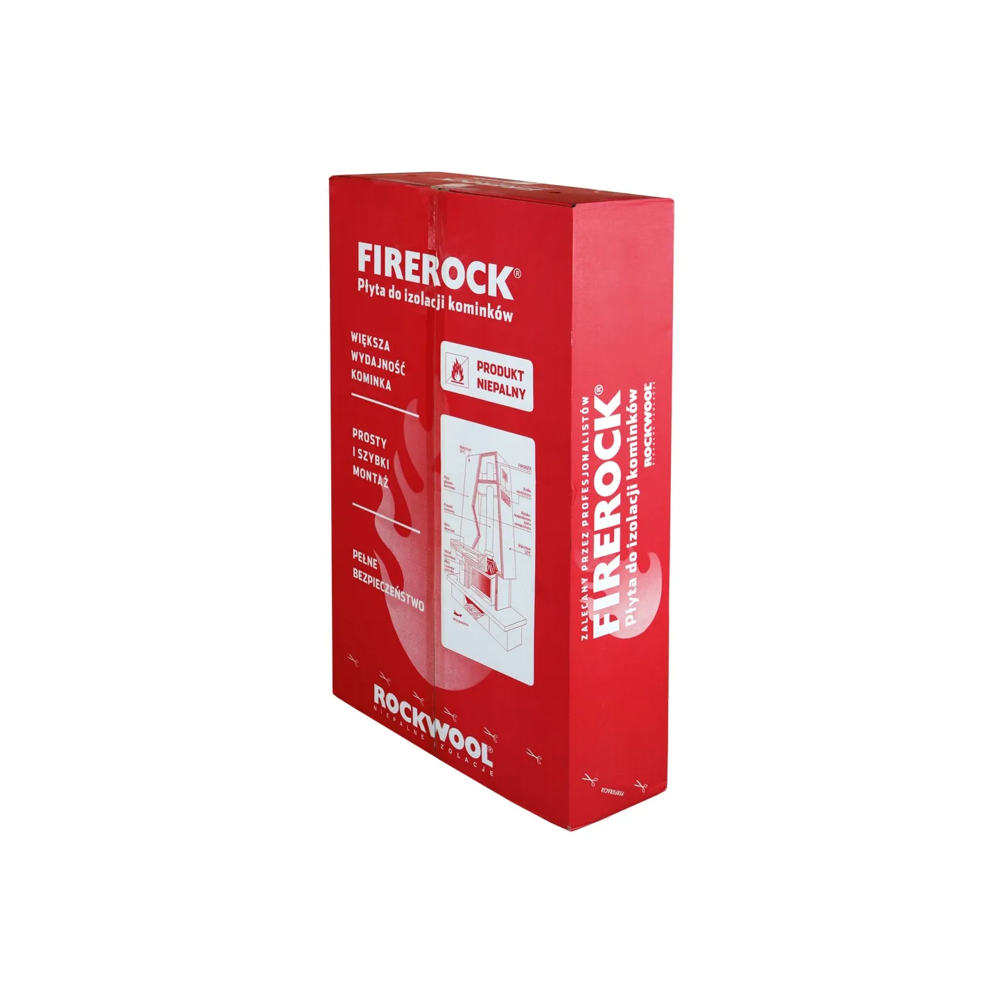 Wełna izolacyjna FireRock Rockwool z ekranem aluminiowym do wykładania czopuchów kominków.