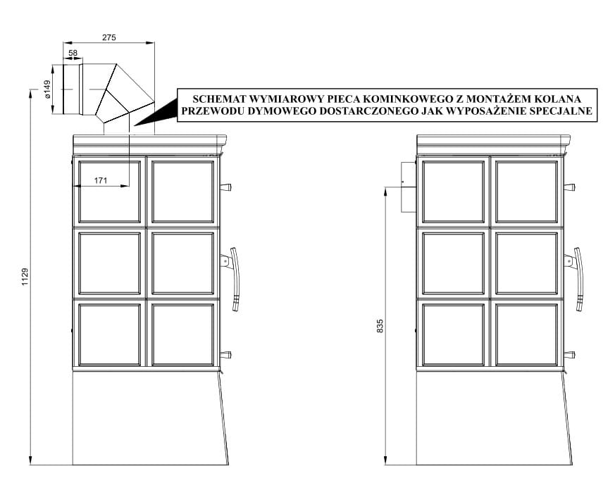 Wyprowadzenie kanału dymnegogórne, tylne, Ø 150