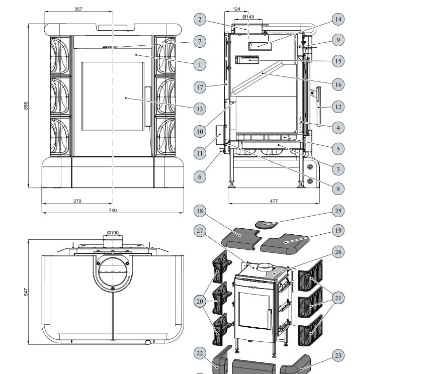 Piec wolnostojący HAAS+SOHN Manta Top / 3 kolory